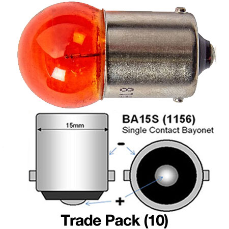 NEOLUX 12V 21W BAU15S AMBER INDICATOR 581 BULBSINGLETWIN PACKTRADE PACK (10)